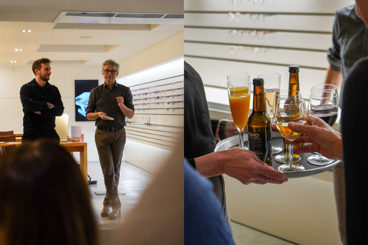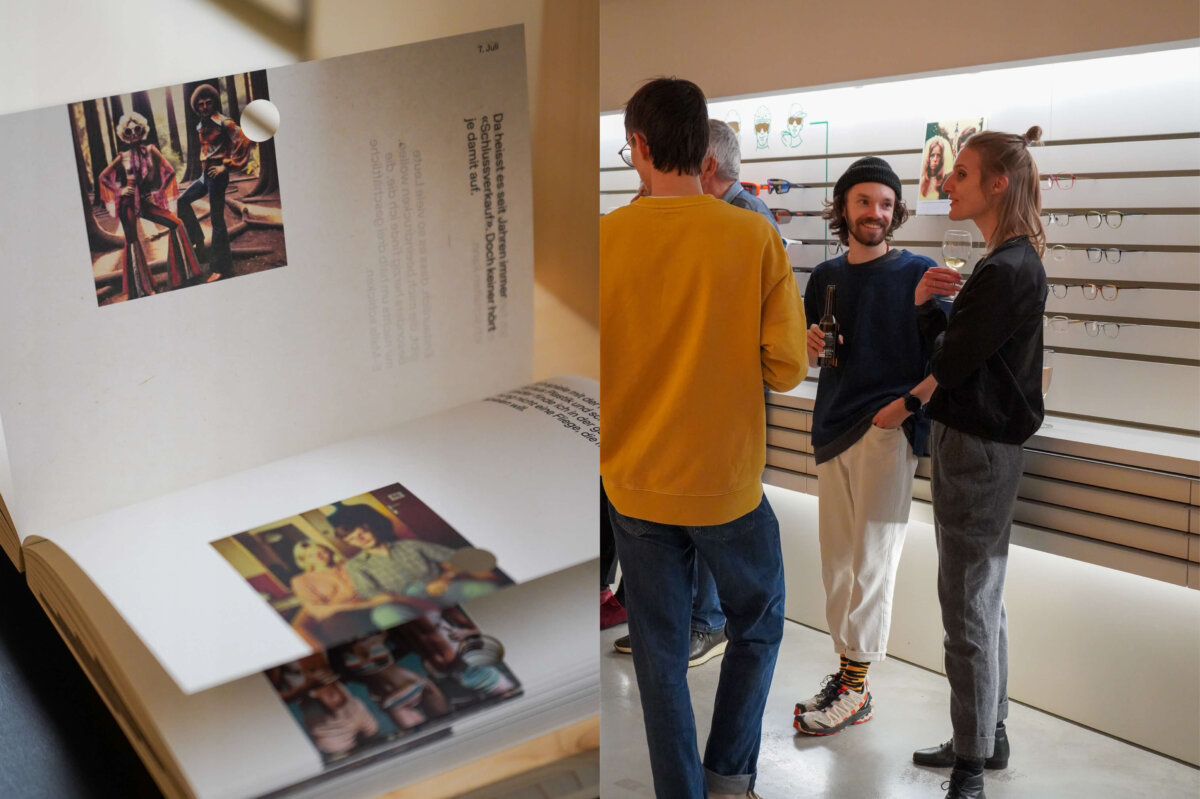 Am 5. Dezember wurde «Die Gedanken sind Brei» bei Urech Optik in Aarau gefeiert. Geschäftsinhaber David Urech sprach mit René Moor über das Buch und seine absurden Alltagsgedanken. Dabei wurde humorvoll gezeigt, wie das Buch dank seines Lochs auch als Sehtest für zuhause genutzt werden kann.