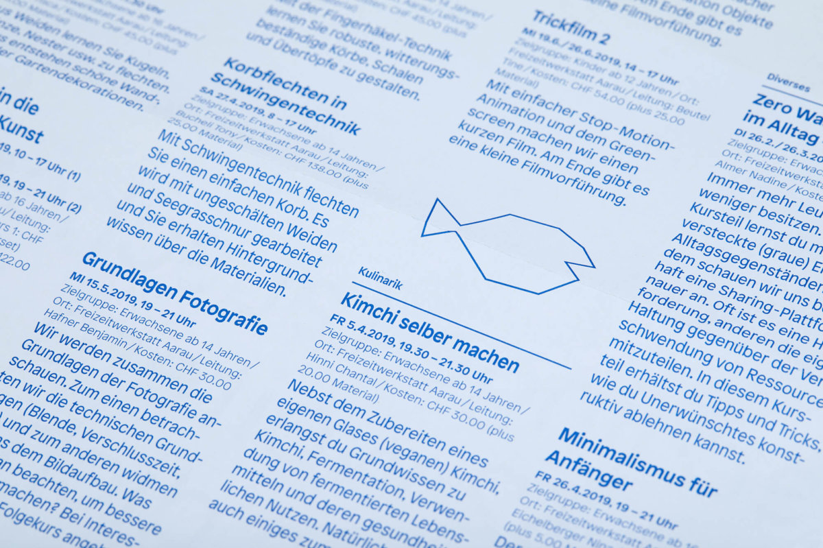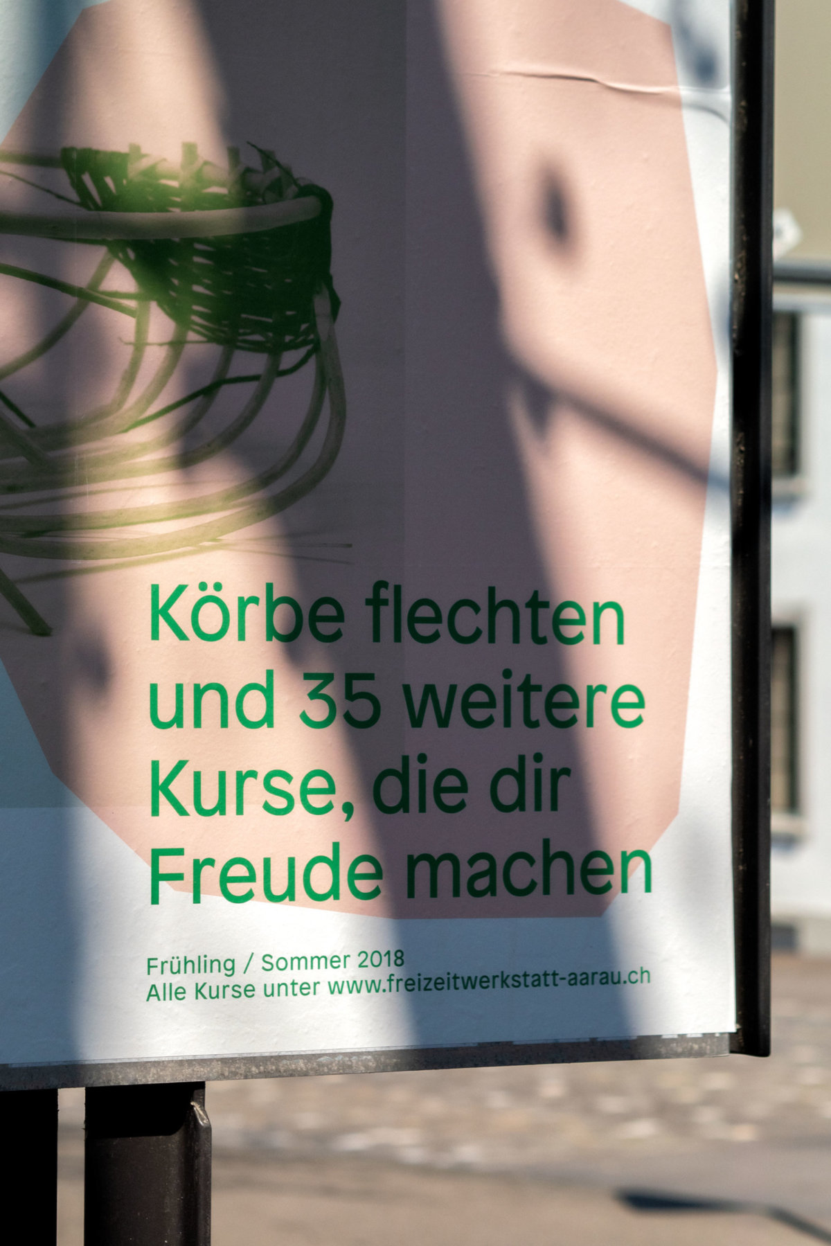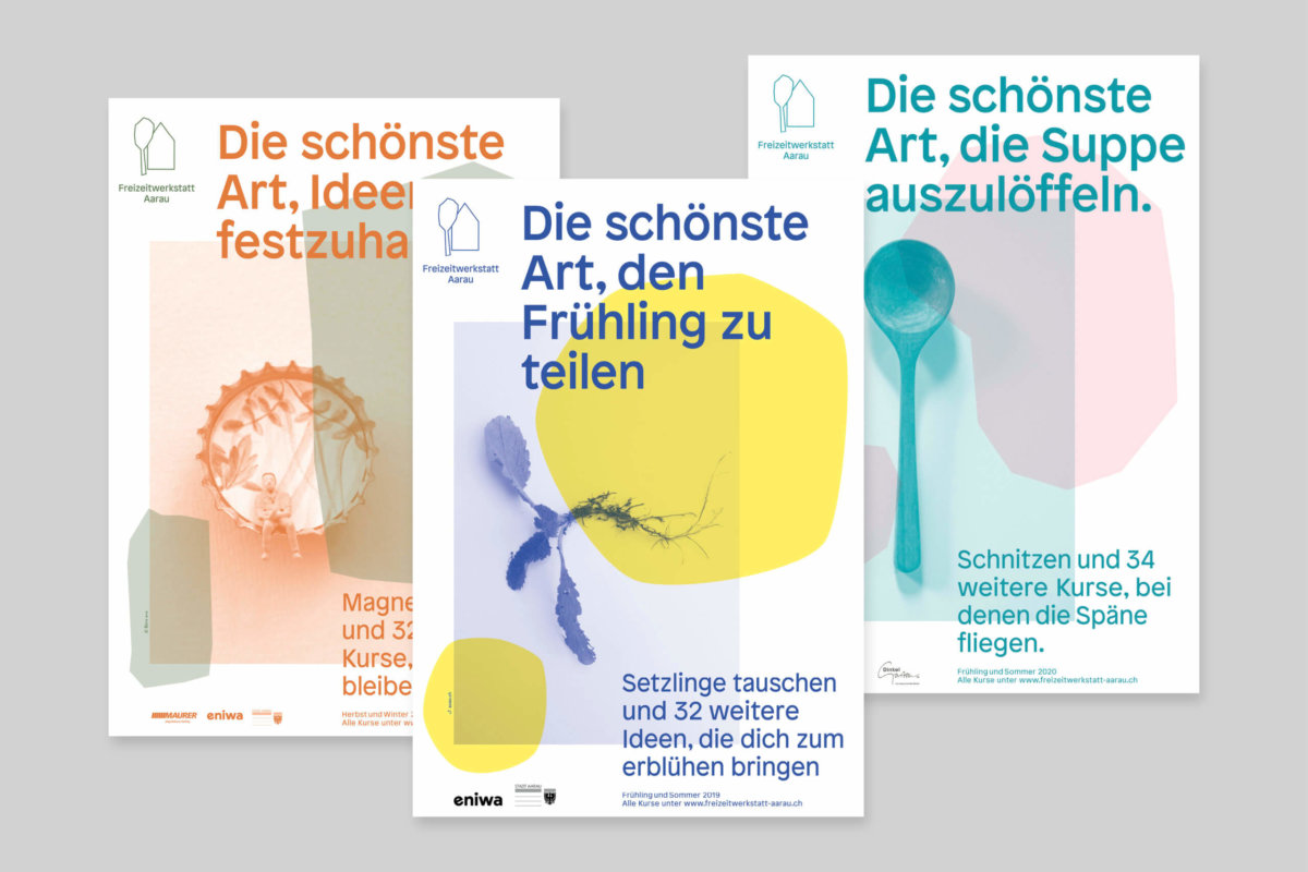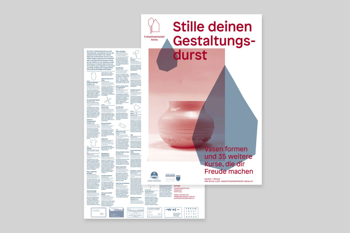 Der Verein Freizeitwerkstatt Aarau bietet mit seinem vielseitigen Kursprogramm und der offenen Töpferei seit 75 Jahren Raum für kreativen Austausch für Jung und Alt. Allerdings war die eigene Kommunikation 2017 nicht mehr auf dem neuesten Stand. Hier sorgte das Büro a+o für frischen Wind.