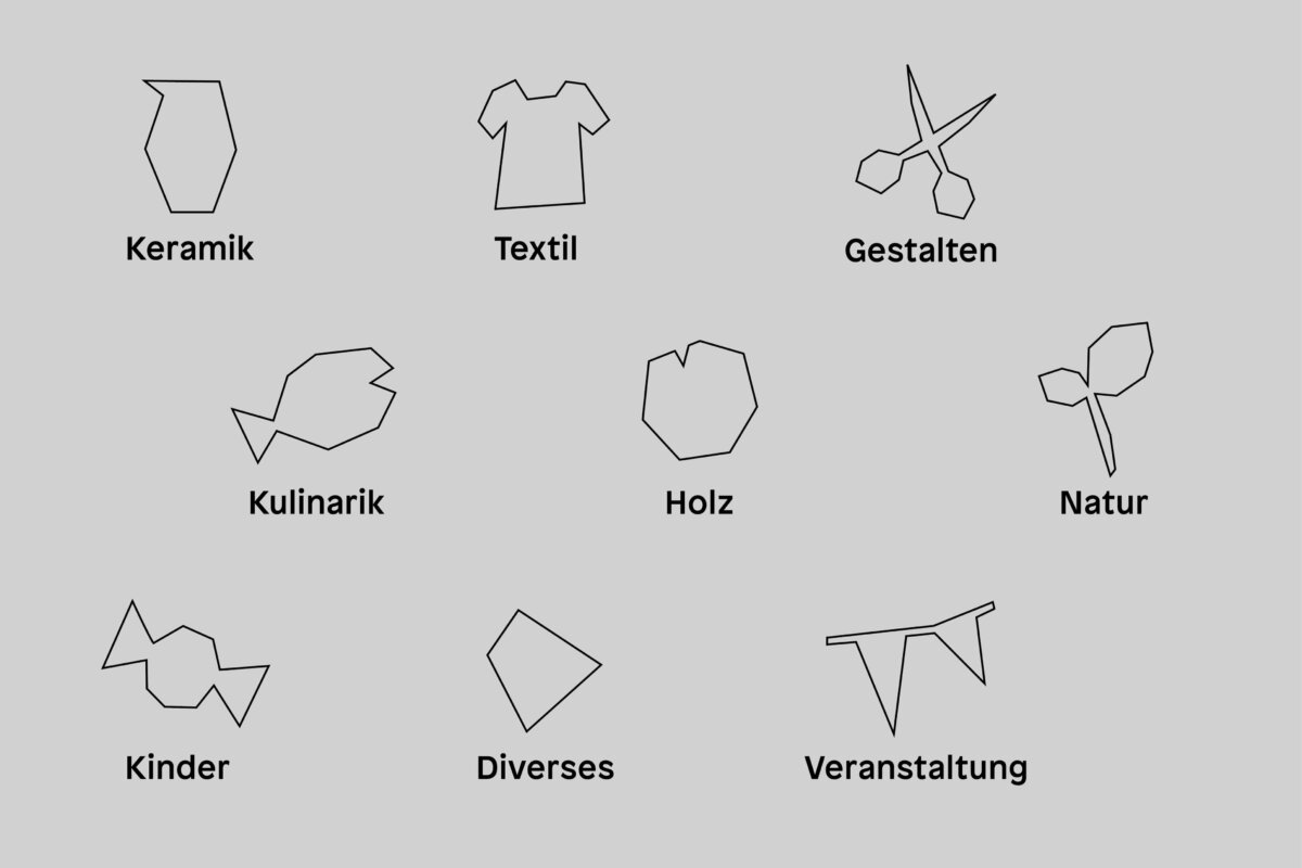 Die Website haben wir benutzerfreundlicher aufgebaut und verbessert. Die Kurse sind übersichtlich dargestellt, KursleiterInnen können Anpassungen einfach selbst vornehmen und Interessierte melden sich neu bequem via Website für Kurse an. Passend zum Auftritt haben wir Kurs-Piktogramme entwickelt, die zur Kategorisierung auf dem Flyer und auf der Website dienen.