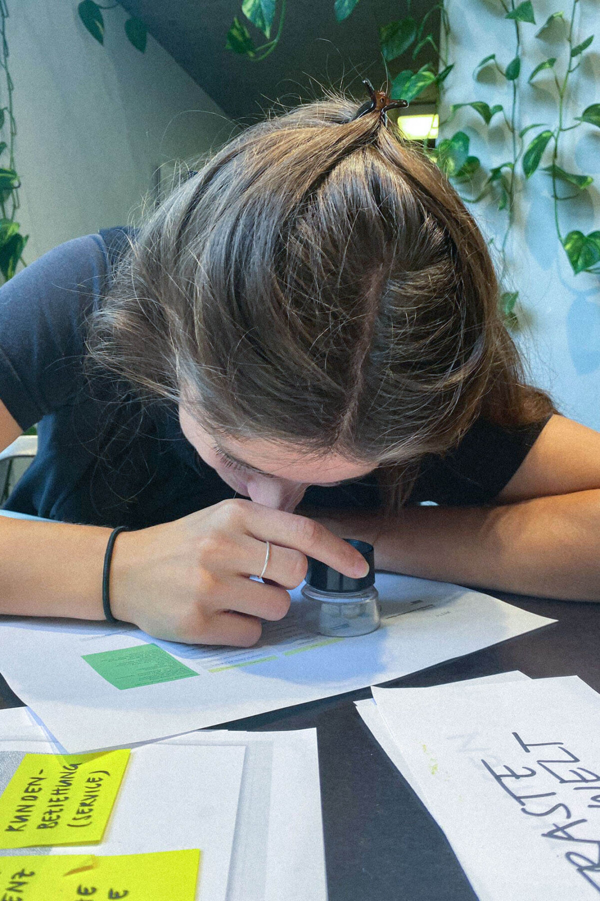 Während meinem Praktikum hatte ich die Möglichkeit, in verschiedenen Bereichen wertvolle Einblicke zu erhalten. So konnte ich mich als Gestalterin weiterentwickeln, aber auch im Bereich der Strategie und Projektleitung einiges dazulernen. Im Gestaltungsprozess auszubrechen, stellte sich anfangs als Herausforderung dar. Der regelmässige Austausch im Team und die vielen positiven Kundenfeedbacks haben mir geholfen, diese Hemmschwelle zu überwinden und neue Projekte mit mehr Gelassenheit anzugehen. Im Bereich der Projektleitung hingegen fühlte ich mich von Anfang an wohl. Meine Erfahrungen im Verkauf und die Vorliebe für organisierte Task-Listen konnte ich hier wunderbar einbringen. Mit der Zeit fiel es mir immer einfacher, mich in Kund:innen hineinzuversetzen und zu verstehen, wie gehandelt werden muss.