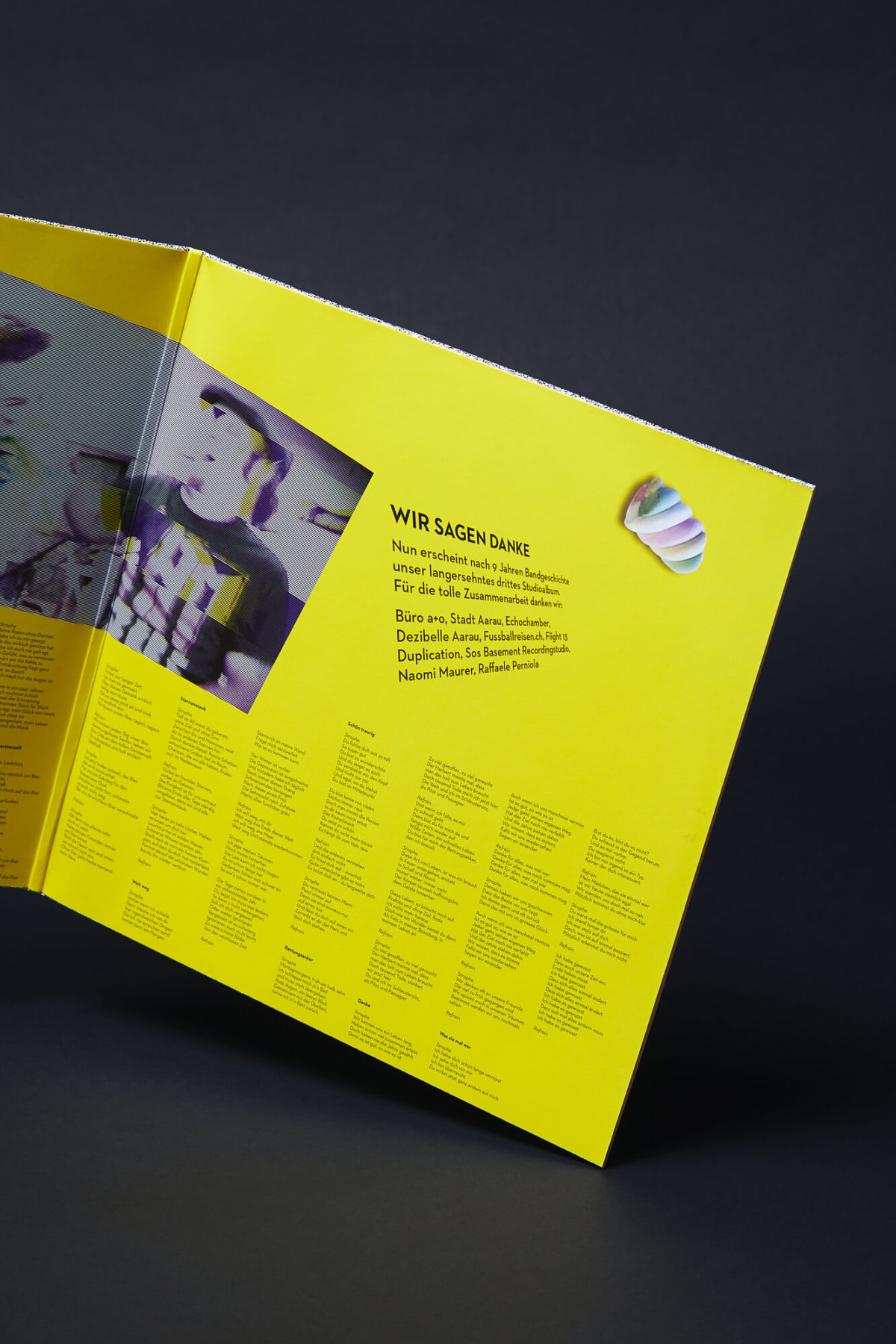 Neben dem Artwork der Alben sind wir für Promo, Teaserfilme und das Merchandise verantwortlich. Zudem unterstützen wir die Band und ihr Management rund um die Kommunikationsstrategie. Uns gefällt, dass die Jungs so offen sind und wir jeweils freie Hand haben. Aus dieser fruchtbaren Zusammenarbeit sind mittlerweile zwei Platten entstanden.