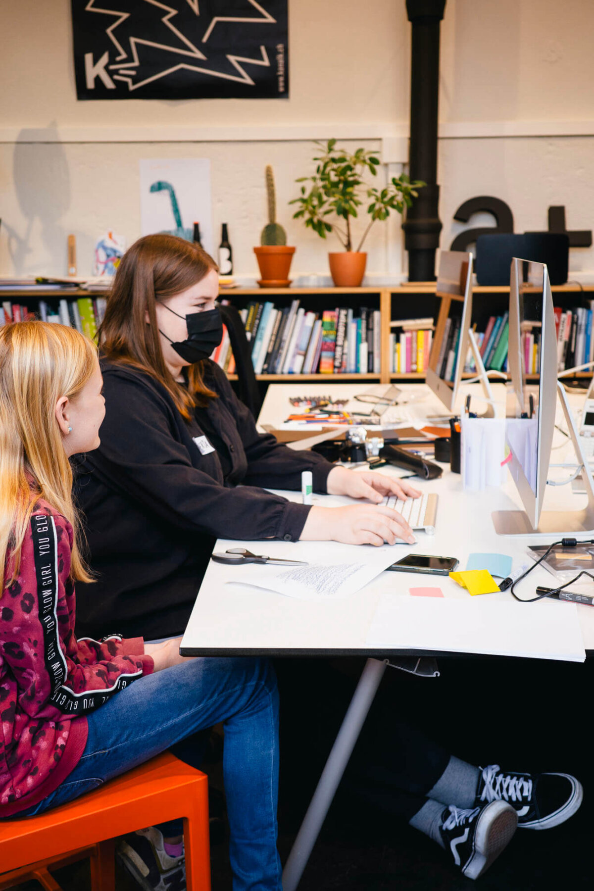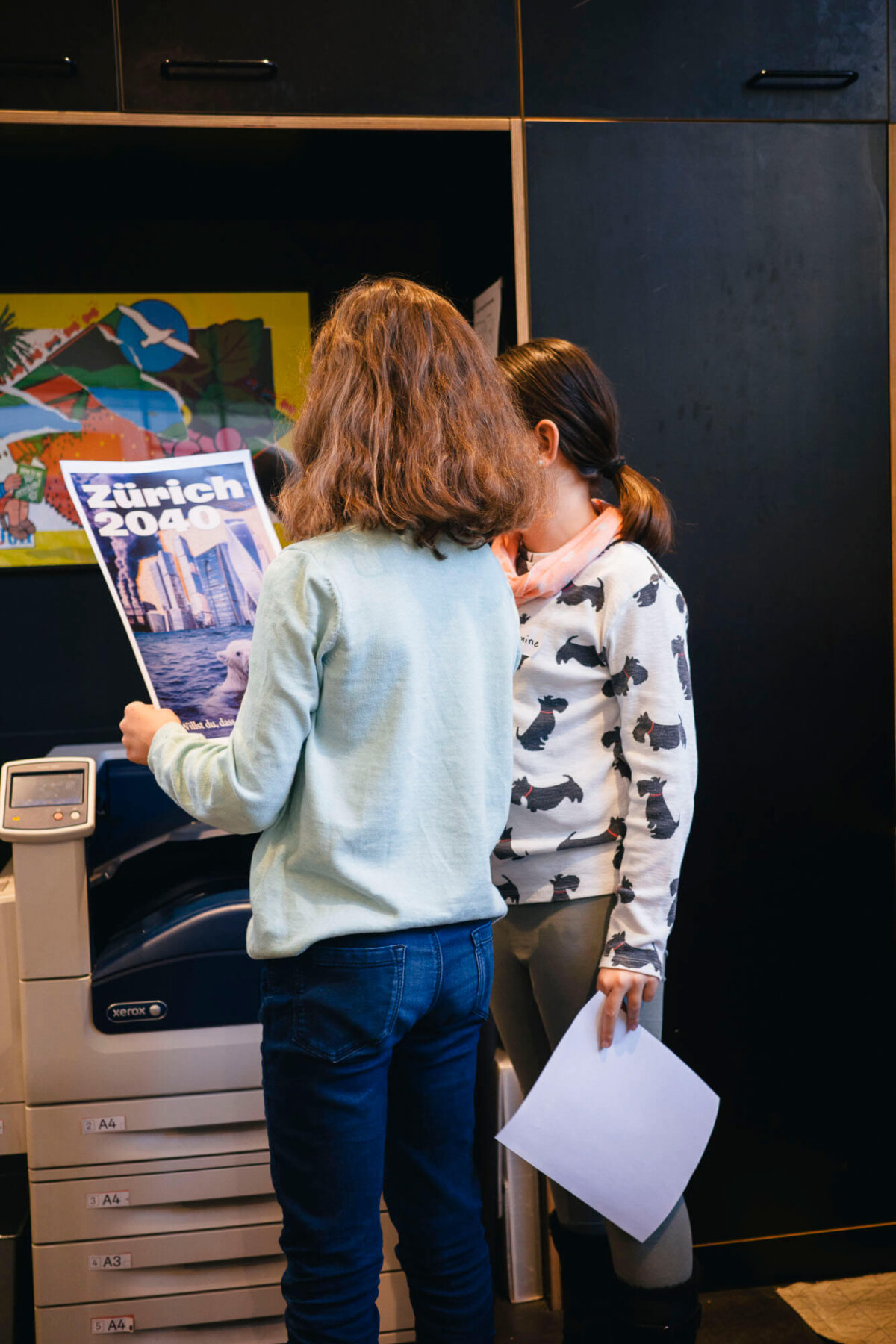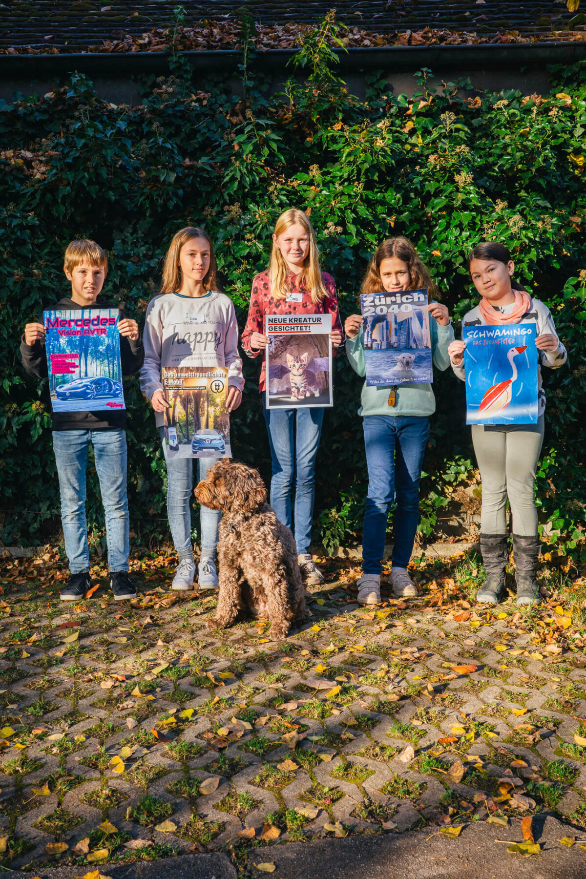 Coole Mädchen und Jungs im Atelier: Im Rahmen des Zukunftstages öffneten wir unseren Türen und ermöglichten einen Einblick hinter die Kulissen unserer Kreativagentur. Zu Besuch kamen fünf interessierte Kids, bei denen die Ideen im Kopf nur so sprudelten. Nach einer Führung durchs Atelier und einem Besuch bei unserem Texter René im ersten Stock, starteten wir einen kleinen Strategieworkshop zum Thema «Zukunft». Ziel war es, Ideen für ein Kampagnen-Sujet zu erarbeiten. Mit analogen und digitalen Techniken machten sich die Schüler:innen ans Werk und gestalteten Plakate zu aktuellen Themen wie dem Klimawandel, Elektromobilität und Tieren in der Zukunft. Der Tag endete mit einer Plakatpräsentation und strahlenden Gesichtern. Auch bei uns Grossen.